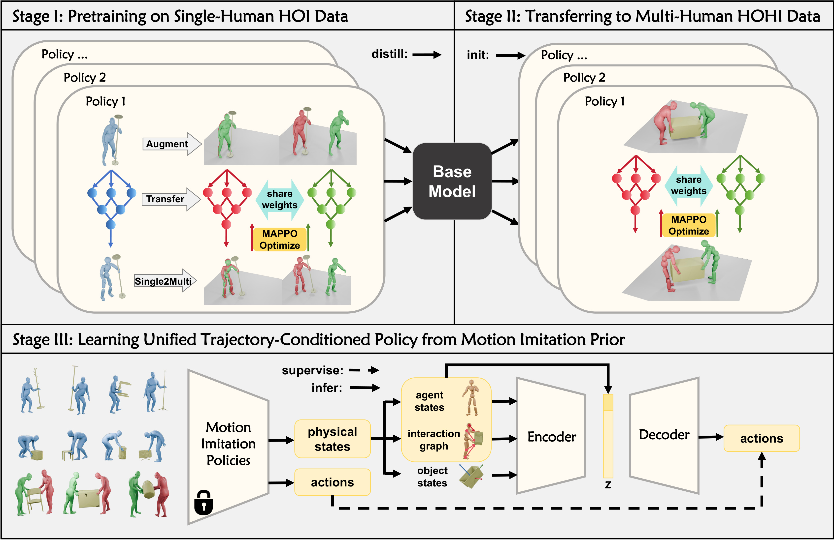 Controllable cooperative humanoid manipulation is a fundamental yet challenging problem for embodied intelligence, due to severe data scarcity, complexities in multi-agent coordination, and limited generalization across objects. In this paper, we present SynAgent, a unified framework that enables scalable and physically plausible cooperative manipulation by leveraging Solo-to-Cooperative Agent Synergy to transfer skills from single-agent human-object interaction to multi-agent human-object-human scenarios. To maintain semantic integrity during motion transfer, we introduce an interaction-preserving retargeting method based on an Interact Mesh constructed via Delaunay tetrahedralization, which faithfully maintains spatial relationships among humans and objects. Building upon this refined data, we propose a single-agent pretraining and adaptation paradigm that bootstraps synergistic collaborative behaviors from abundant single-human data through decentralized training and multi-agent PPO. Finally, we develop a trajectory-conditioned generative policy using a conditional VAE, trained via multi-teacher distillation from motion imitation priors to achieve stable and controllable object-level trajectory execution. Extensive experiments demonstrate that SynAgent significantly outperforms existing baselines in both cooperative imitation and trajectory-conditioned control, while generalizing across diverse object geometries. Codes and data will be available after publication.